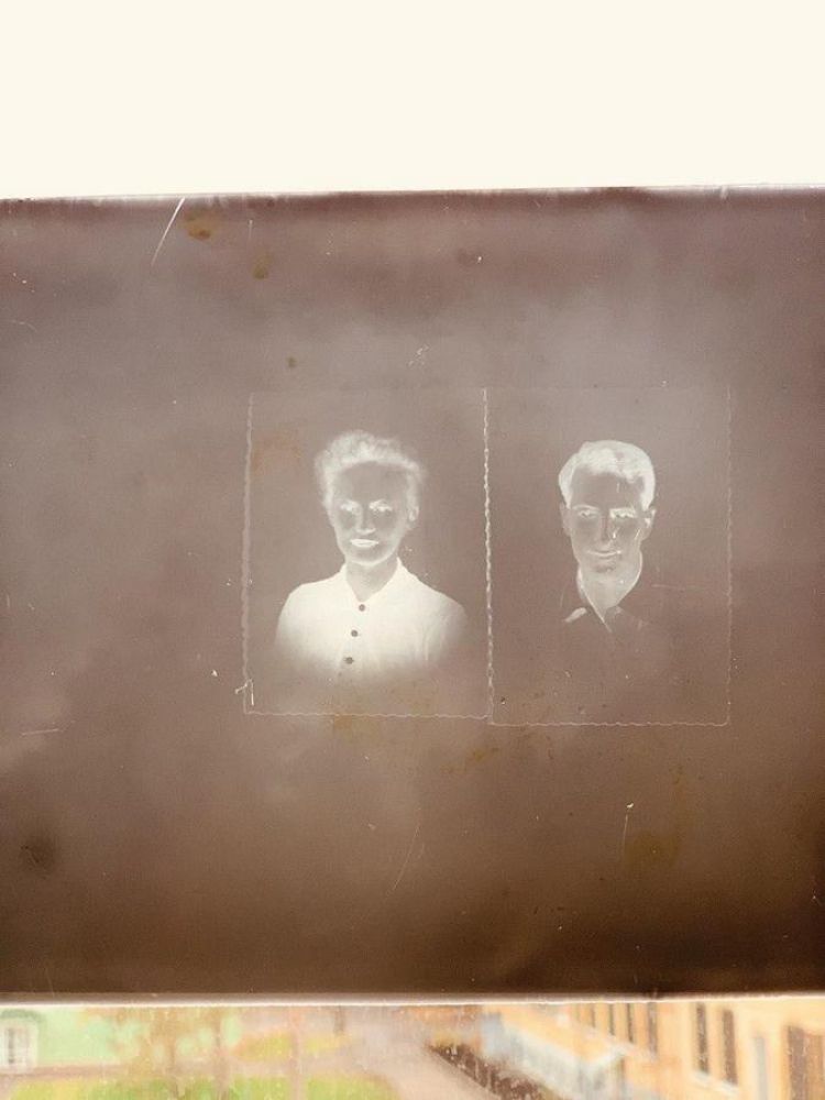 На фото: артефакты из Мемориального кабинета Б. Понтекорво (ЛЯП ОИЯИ), в том числе негатив на стекле — фото Бруно и Марианны Понтекорво; В. Б. Флягин и директор ЛЯП ОИЯИ В. П. Джелепов (фото из архива ОИЯИ).