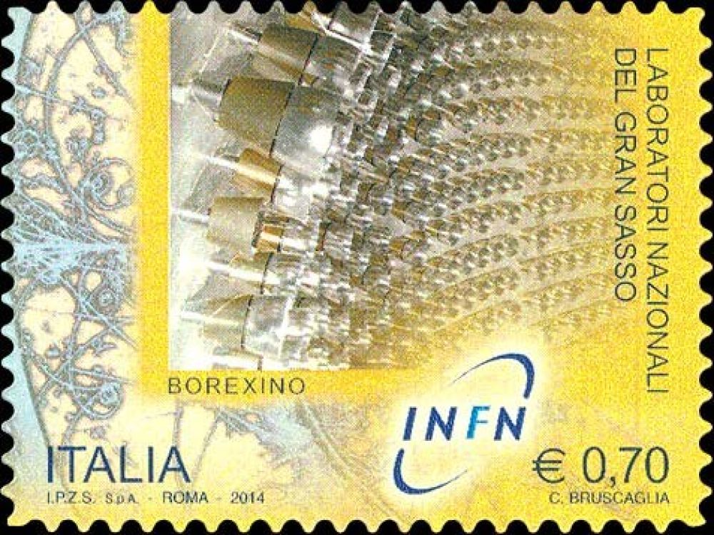 В поле нашего зрения попала итальянская марка 2014 года, выпущенная в небольшой серии «Совершенство знания». На ней изображен детектор Borexino Национальной лаборатории Гран-Сассо Национального института ядерной физики Италии. Исследователь-филателист М. Теплинский написал однажды: «…Благодаря маркам можно не просто лучше узнать ту или иную страну, её флору и фауну, историю и живопись, но выяснить политику государства, которая прямо или косвенно отражается в выборе марочных сюжетов...».