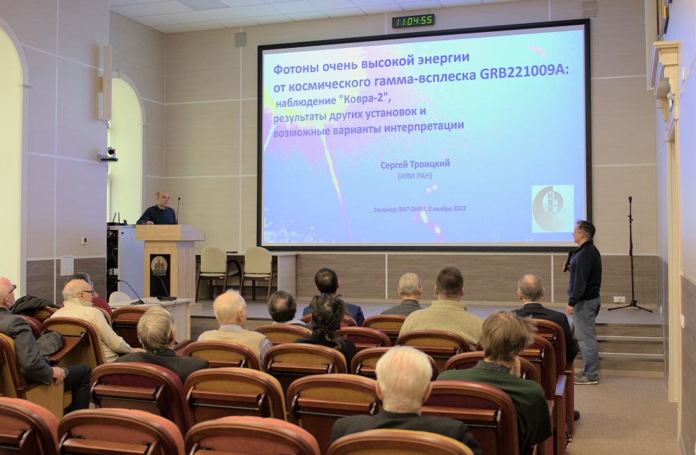 Сергей Троицкий (ИЯИ РАН) "Фотоны очень высокой энергии от космического гамма-всплеска GRB 221009A: наблюдение "Ковра-2", результаты других установок и возможные варианты интерпретации"